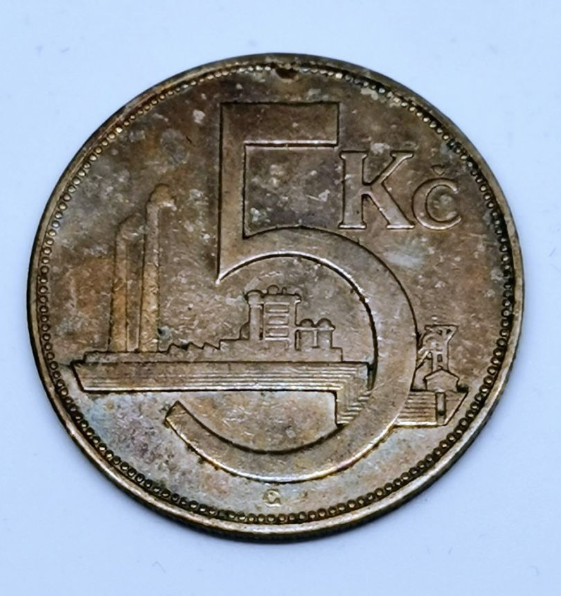 ČSR 5 Kčs 1925 - CuNi 75/25, 10g, 30mm - TOP PATINA