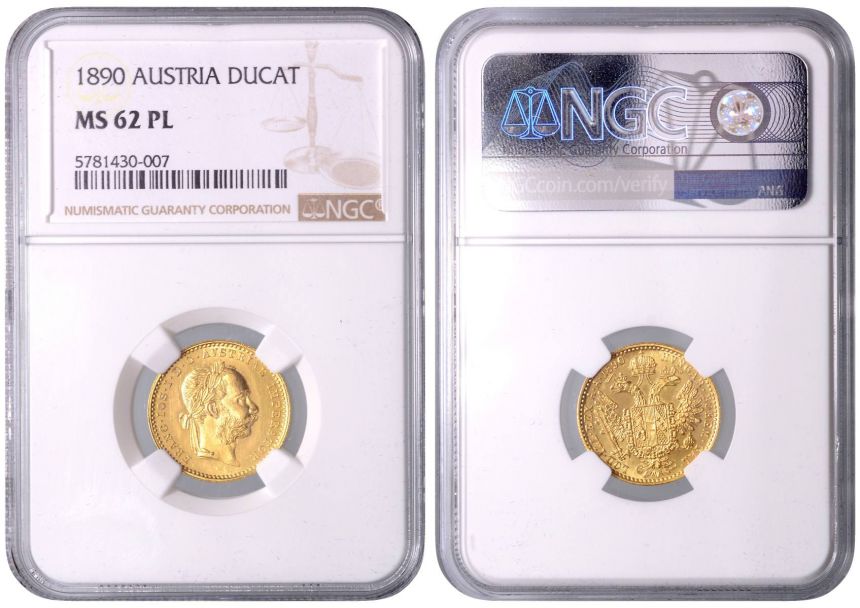1 Dukát 1890, NGC MS62 PL (PROOF LIKE) 3,49g, Au 986/1000, 19,8mm