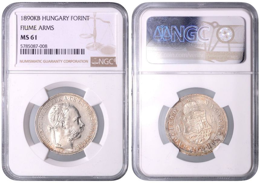 Forint/Zlatník 1890 K.B. s FIUME NGC MS 61 - Ag 900/1000, 12,35g, 29mm
