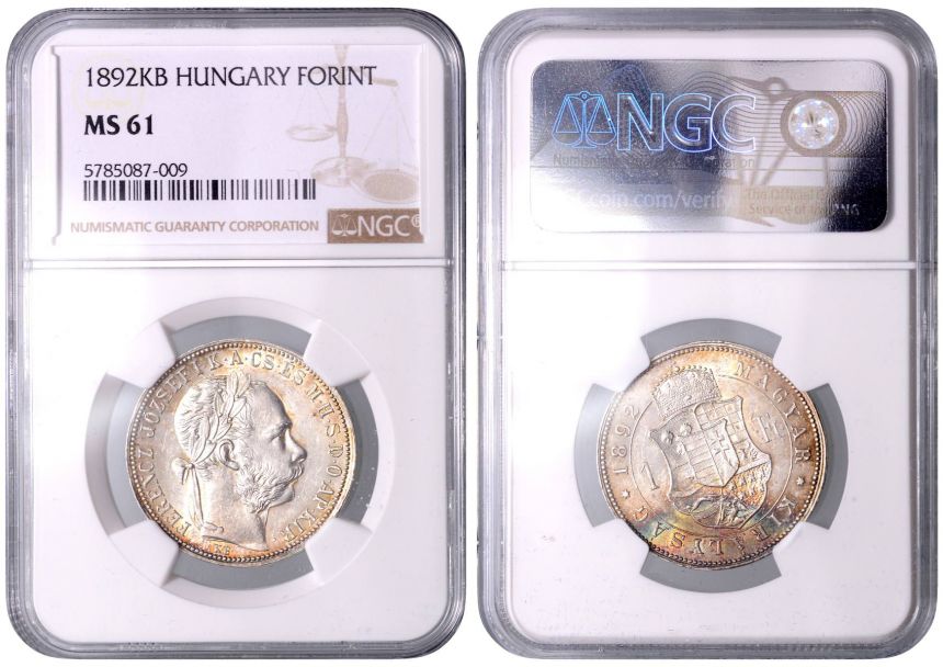 Forint/Zlatník 1892 K.B. NGC MS 61 - Ag 900/1000, 12,35g, 29mm