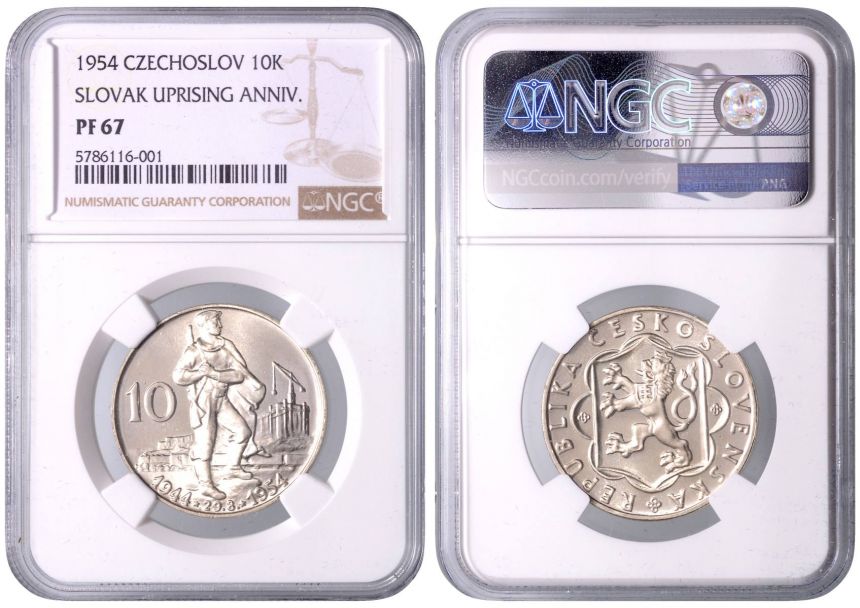 10 Kčs 10. Výročí Slovenského národního povstání, 1954, Kremnica. MCH CSR2P-009 PROOF , NGC PF 67