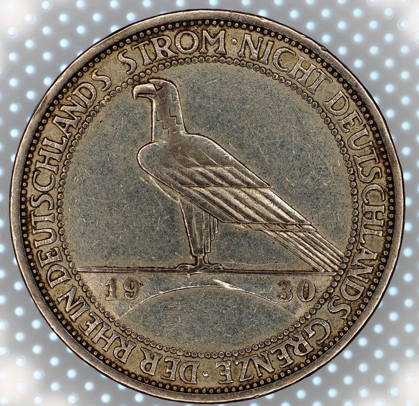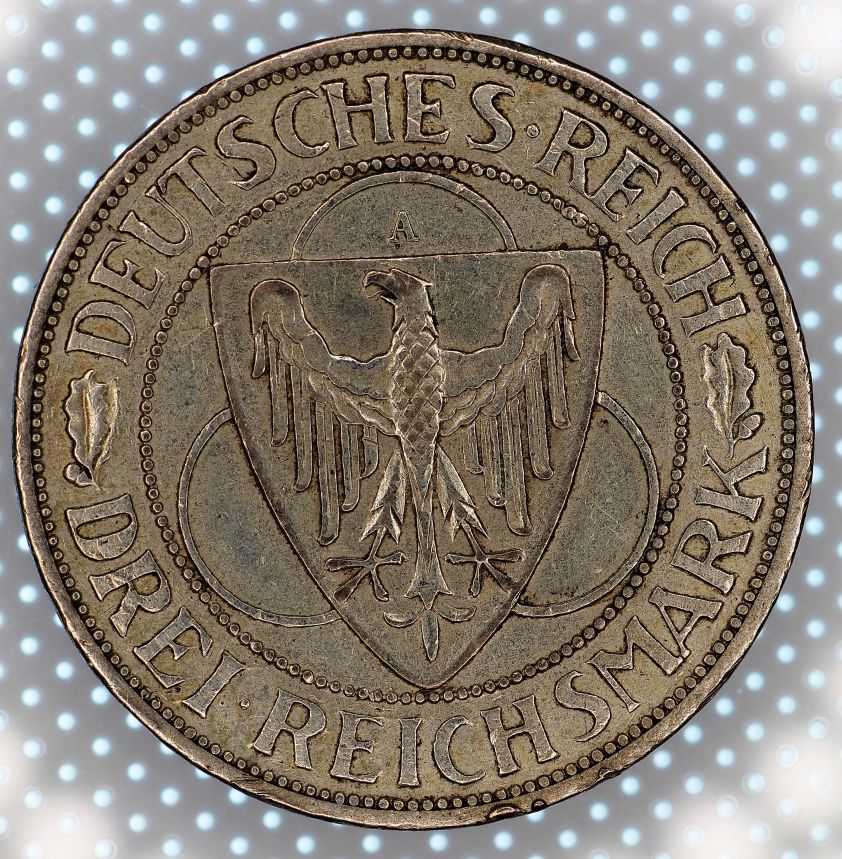 3 Reichsmarka 1930 A - Pták na mostě - 30mm, 15gramů, Ag 500/1000 (2)