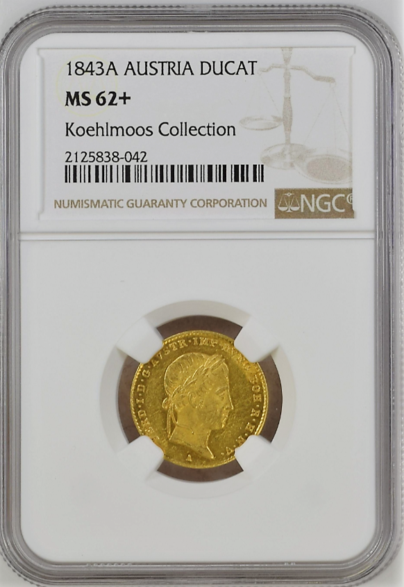 1 Dukát 1843A NGC MS62+ - KOEHLMOOS COLLECTION, 3,49g, Au 986/1000, 20mm
