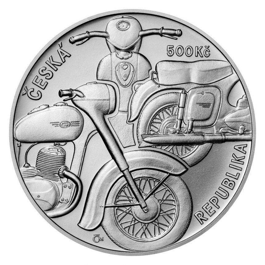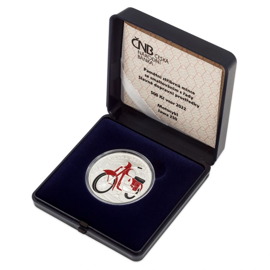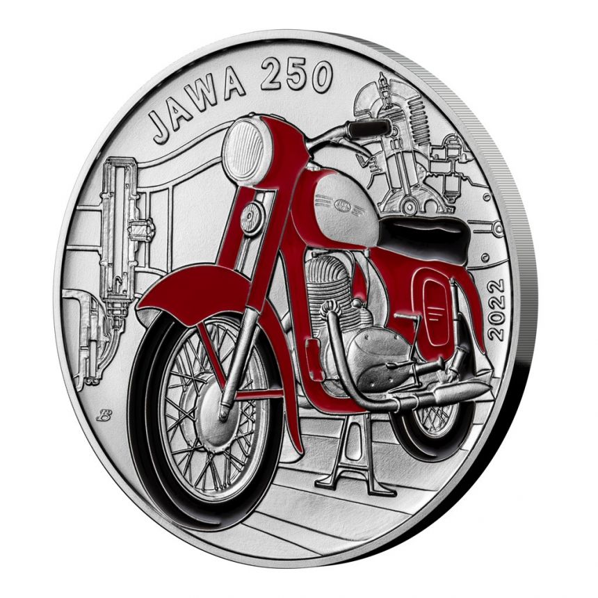 Cyklus stříbrných mincí České národní banky s nominální hodnotou 500 Kč, který v průběhu pěti let připomene slavné dopravní prostředky, představuje svou druhou emisi. Mince s letopočtem 2022, která byla vyražena v provedení standard, je věnována motocyklu JAWA 250 typ 353.