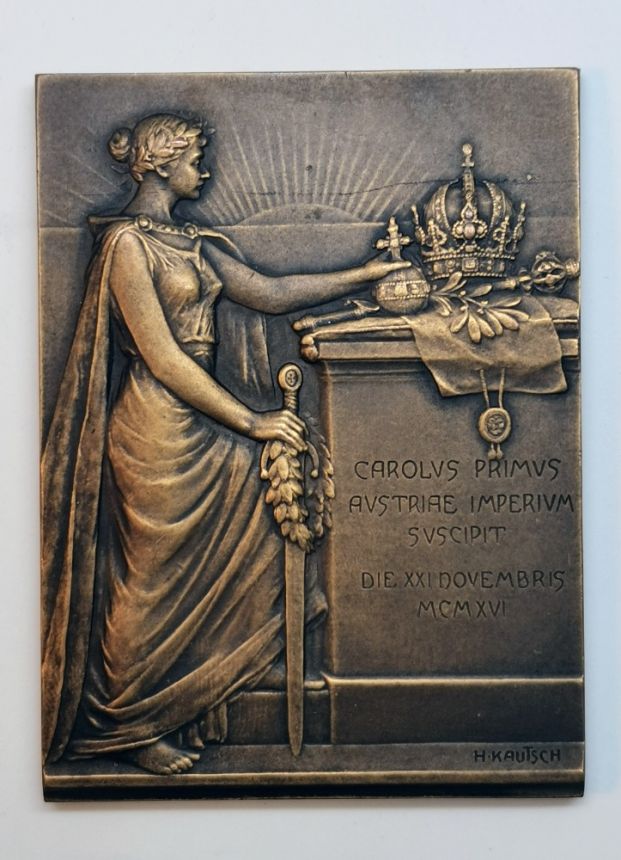 Karel I. - AE Plaketa b.l. (H. Kautsch) dvoustranná - poprsí zprava, Br 75 x 58 mm