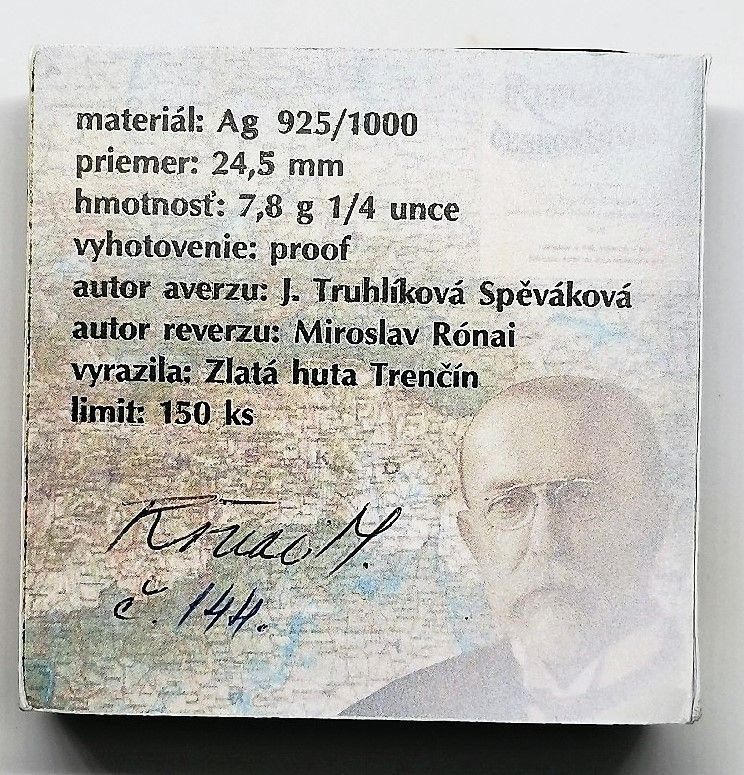 Ag replika 10 Kčs T.G.MASARYK 1990 - Varianta RONAI č.144/150