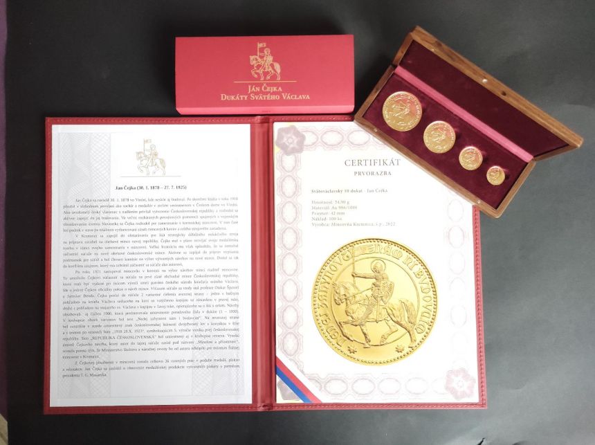 Nezrealizované návrhy na Svatováclavské dukáty ze soutěže že v roce 1922 - motiv od autora Jana Čejky. Ražba kompletní sady je realizována z originálních sádrových modelů autora, které byly spolu s modely ostatních autorů po skončení soutěže v roce 1922 darované Mincovně Kremnica.