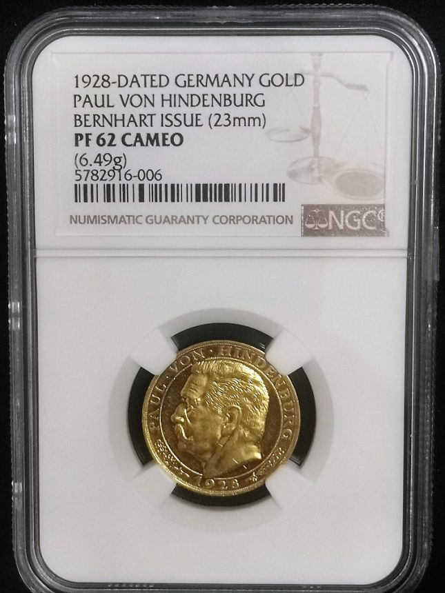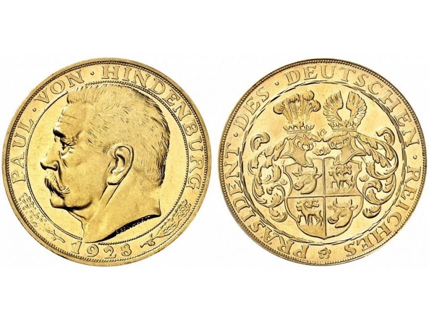 Zlatá medaile 1928 - Paul von Hindenburg NGC PF62 CAMEO