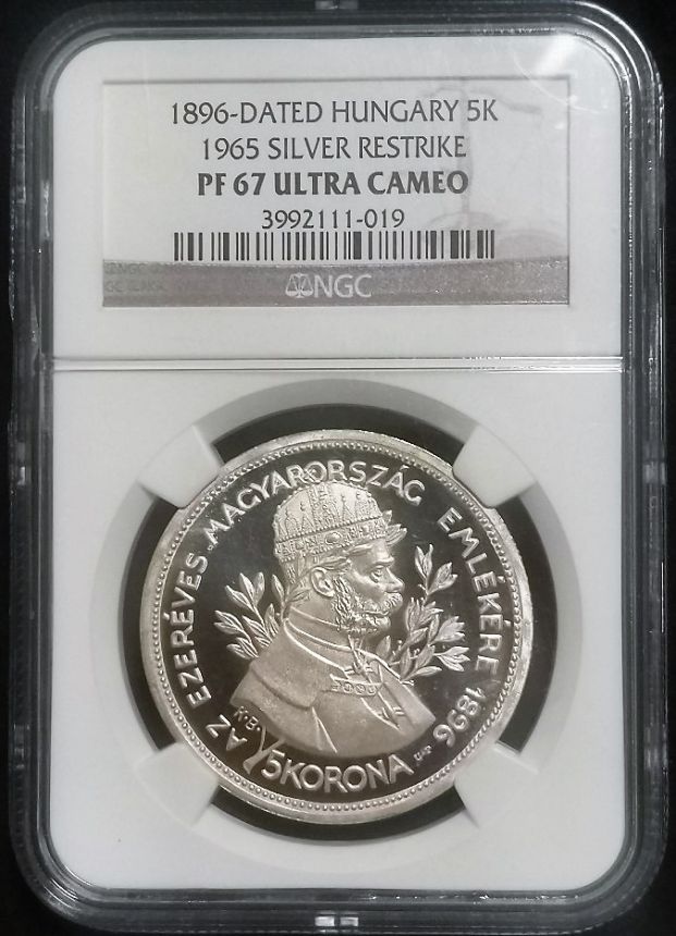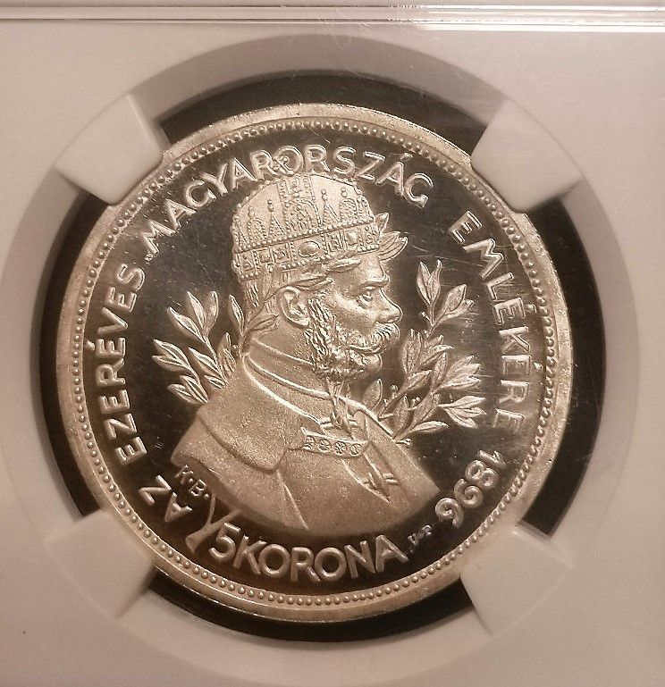ARTEX 5 Koruna Příchod Maďarů 1896/1965 NGC PF 67 ULTRA CAMEO PROOF Novoražba z roku 1965 - Příchod Maďarů