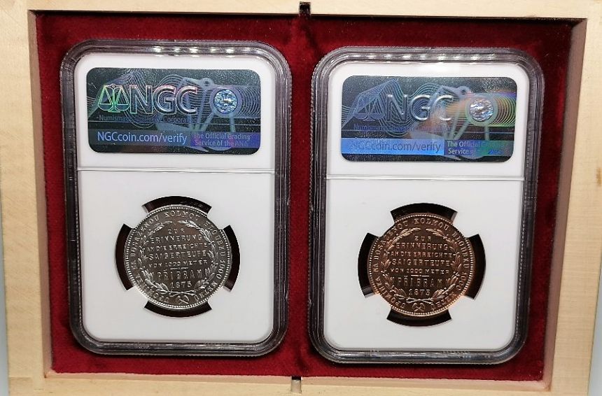 Příbramský Zlatník Ag+Cu 1875/2021 Kremnica NGC MS 68 - v krásné dřevěné Etue