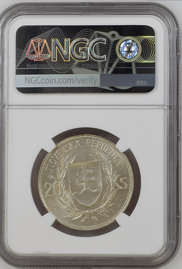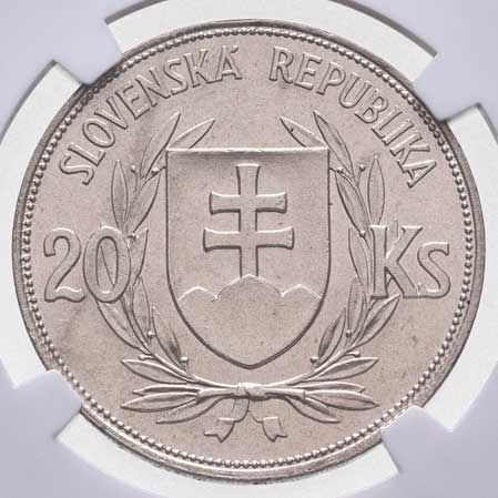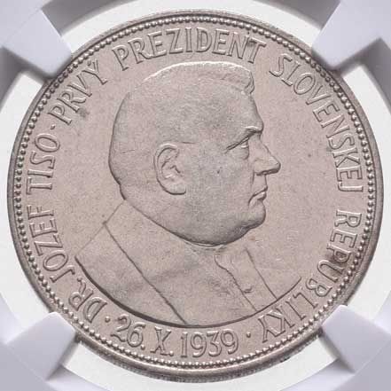 20 Koruna Slovensko Josef TISO 1939, NGC AU 55, 31mm, 15g, Ag 500/1000, hrana vroubkovaná