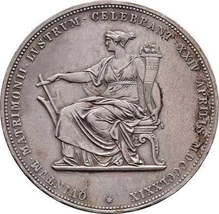 2 Zlatník Svatební 1879 - František I. a Alžběta - SISI - Rok 1879 - Stříbro 900/1000 hrana hladká s nápisem ZWEI GULDEN. XLV.KÉT FORINT, autoři Josef Tautenhayn, Anton Scharff, Friedrich Leisek
