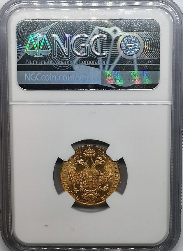 Dukát k 50 výročí nastoupení vlády FJI 1848A/1898 - NGC MS62 - Au 0,986, 19,8mm, 3,491g, hrana vroubkovaná, jubilejní (pouze 26.000 ks), 3.487g, nep.hr., nep.rysky, nep.skvrnky, patina, téměř R!