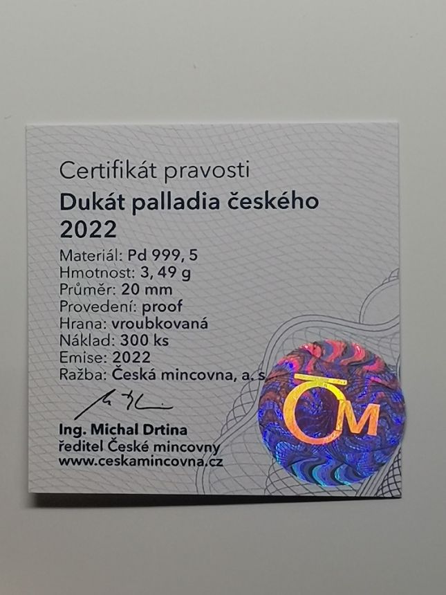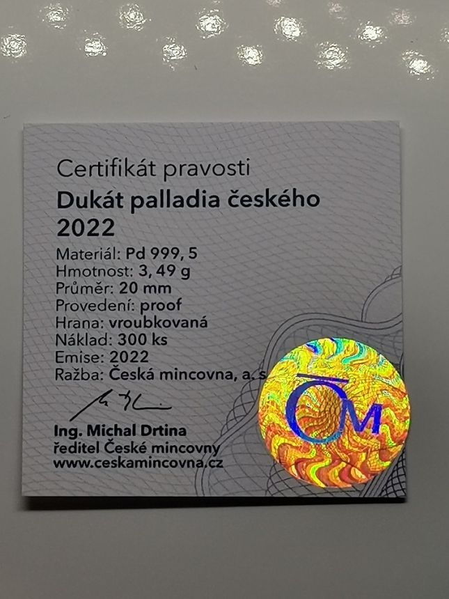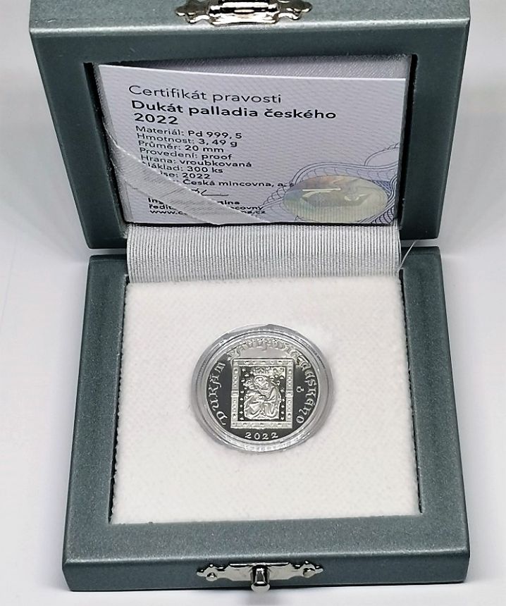 Palladium, náklad 300 kusů, ČM 2022, certifikát, dřevěná etue