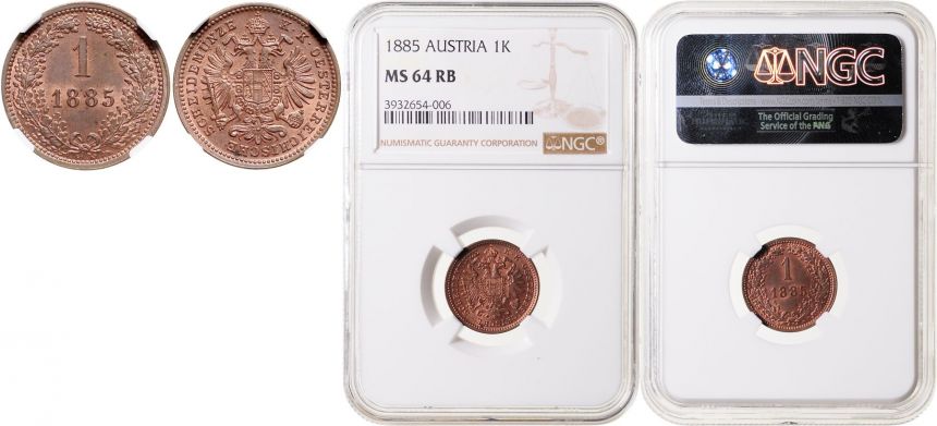 1 krejcar 1885 TOP STAV 0/0 UNC/UNC NGC MS 64RB