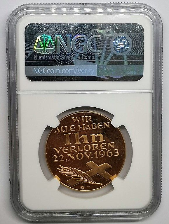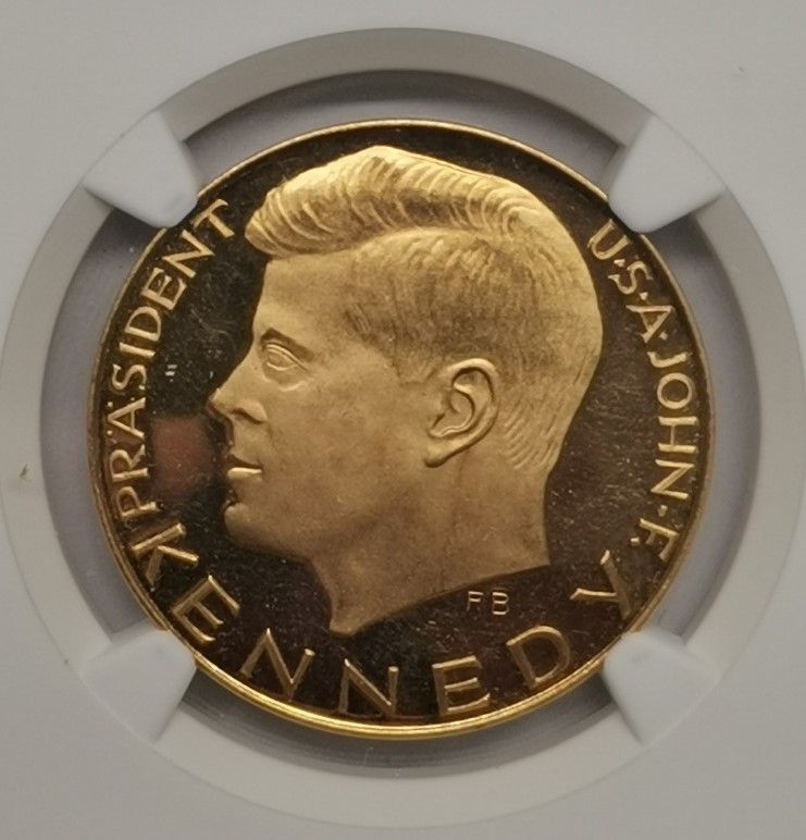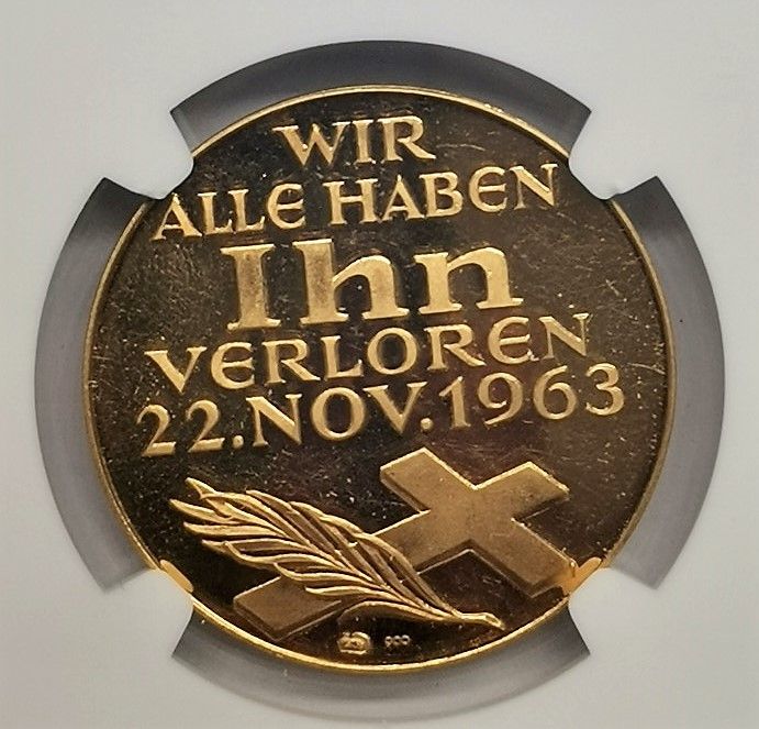 J.F.Kennedy - 5 dukátová úmrtní medaile 22.XI.1963 - NGC PF 65 ULTRA CAMEO RR - velmi vzácná medaile 17,54g, 1967,Au medaile Německo - J.F.KENNEDY, 32mm, Au 900/1000 PROOF - špičková kvalita