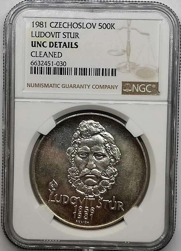 500 Kčs stříbrná pamětní 1981 Ludovít Štůr Ag - Stříbro 900/1000, 24g, 40mm - NGC UNC DETAILS - CLEANED