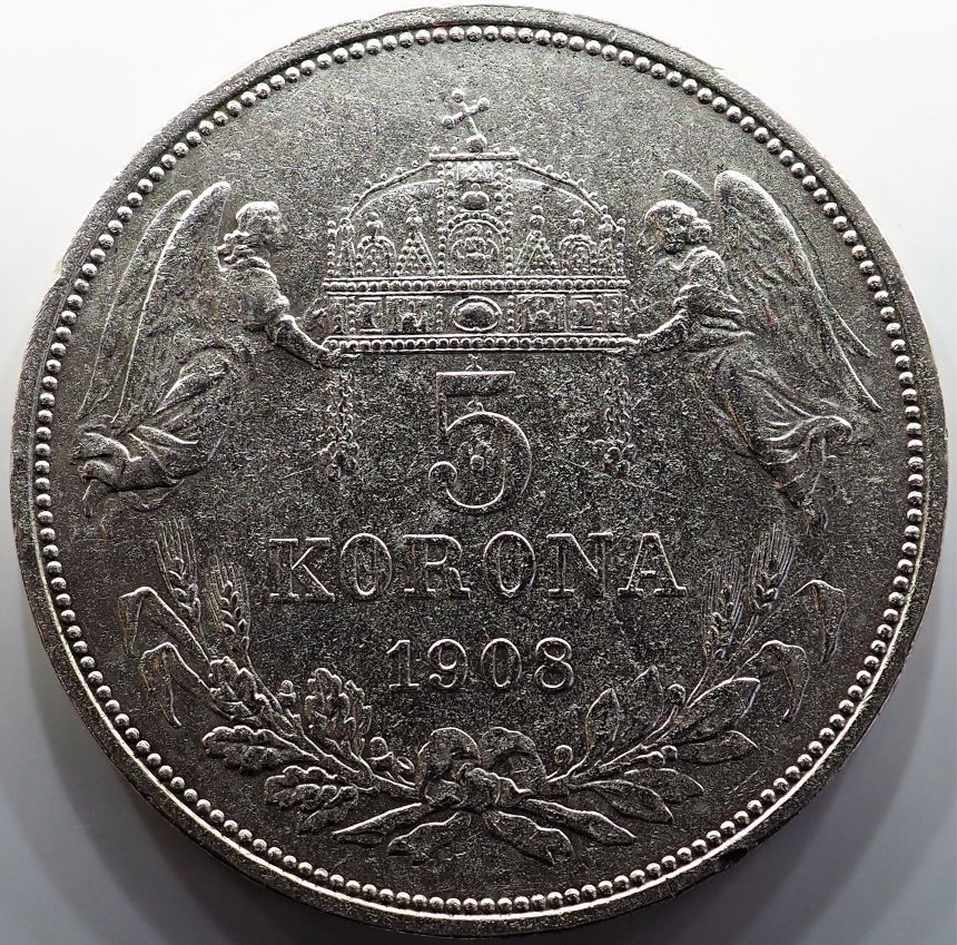 5 Koruna 1908 K.B. - Uherská ražba Ag 900/1000, 24g, 36mm