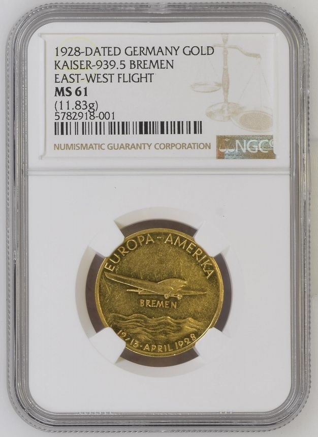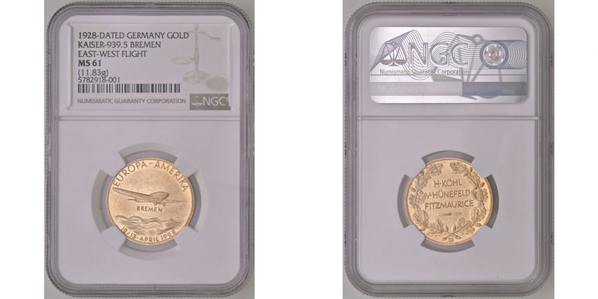 Au medaile - LUFTFAHRT EAST-WEST BREMEN (1928) - NGC MS 61 TOP POP