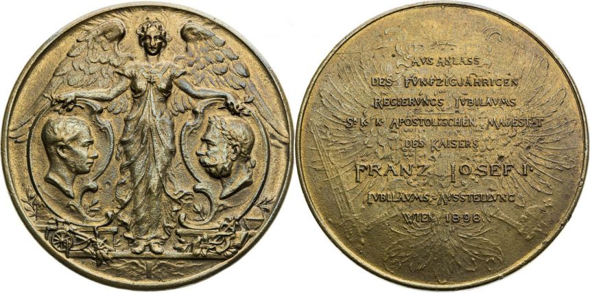 AE Medaile 1898, Výstava k 50. výročí od korunovace císaře, Christlbauer, 73,7 g, 63 mm