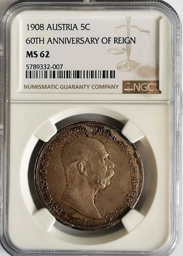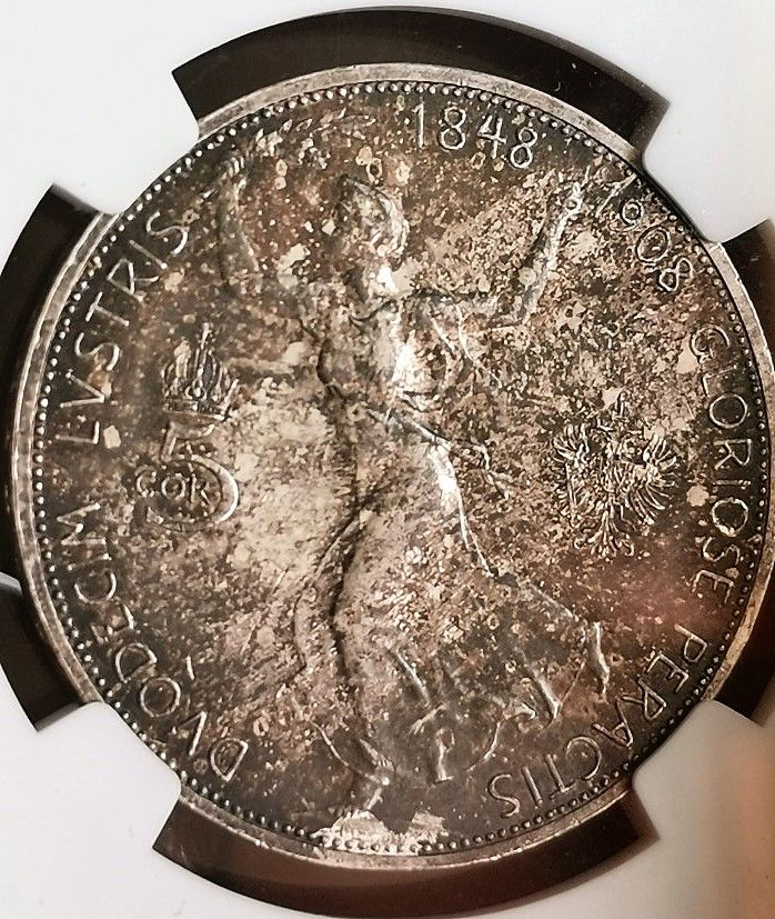 5 Koruna 1908 Jubilejní k 60 letům vlády FJI TOP STAV MS 62 - TOP PATINA
