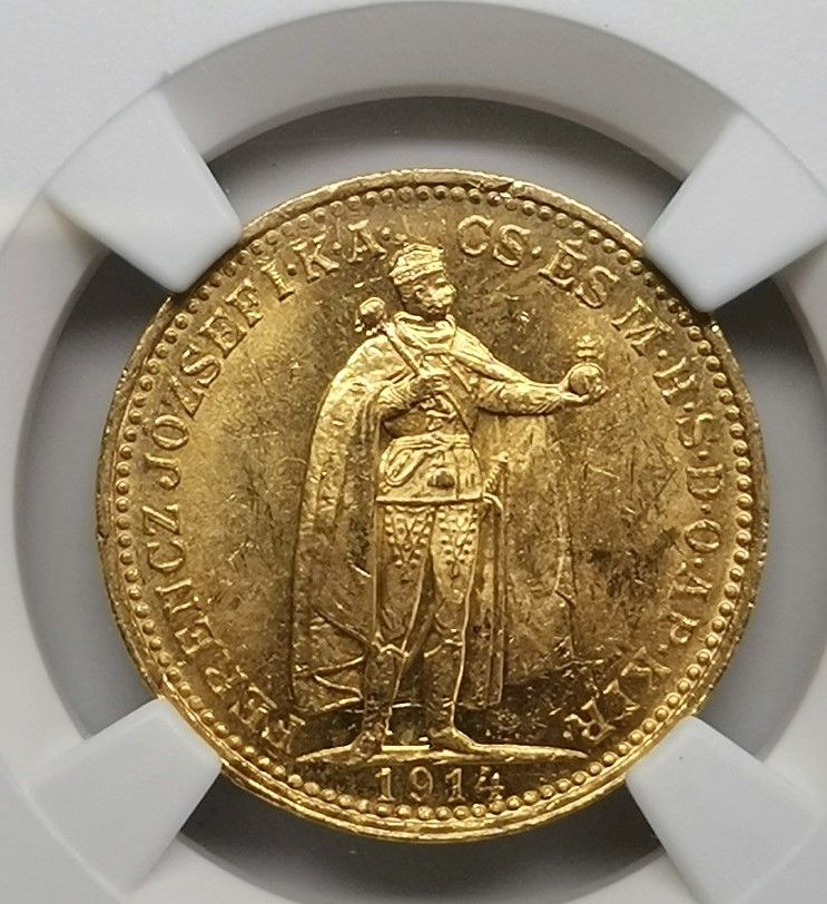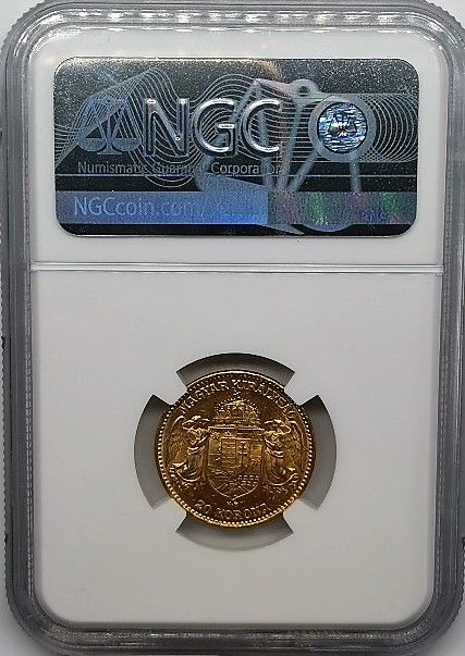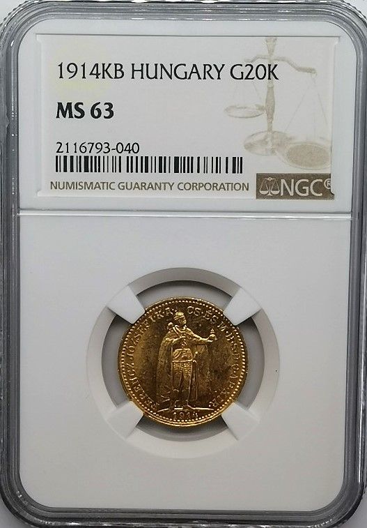 20 koruna 1914 K.B. - Uherská ražba - NGC MS 63 Kremnica Au 900/1000, 21mm, 6,775g, hrana hladká s nápisem BIZALMAN AZ OSI ERÉNYBEN