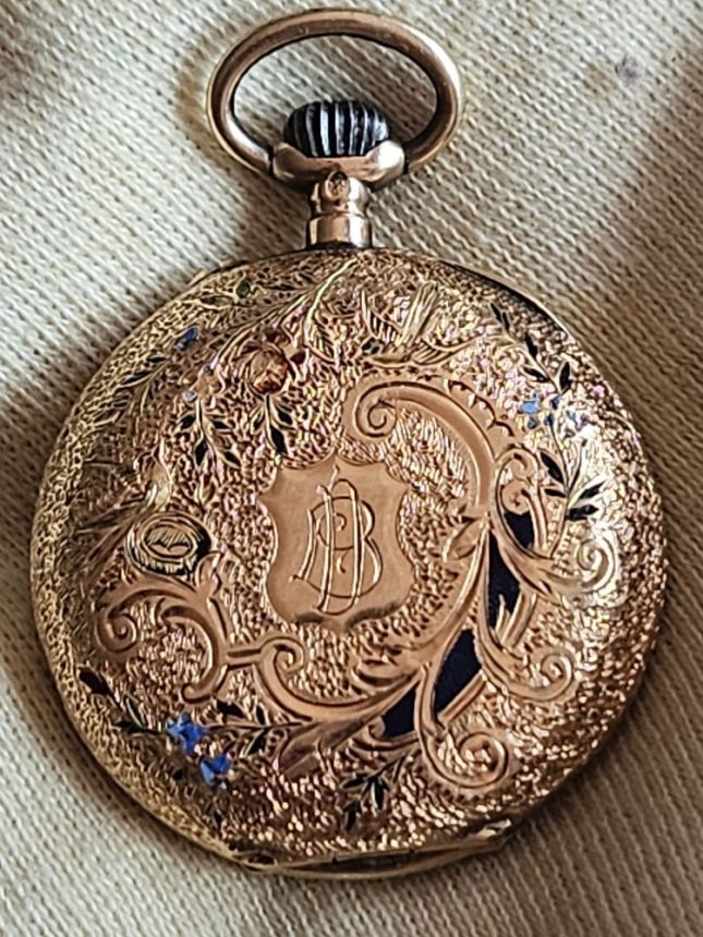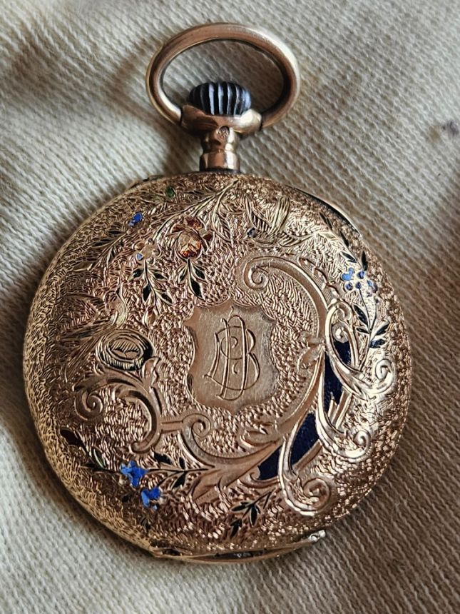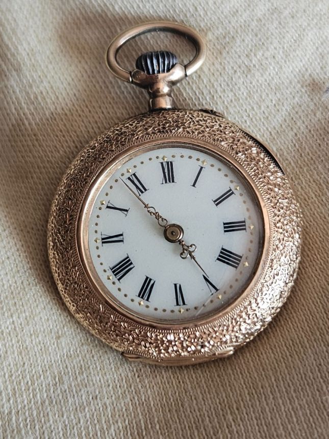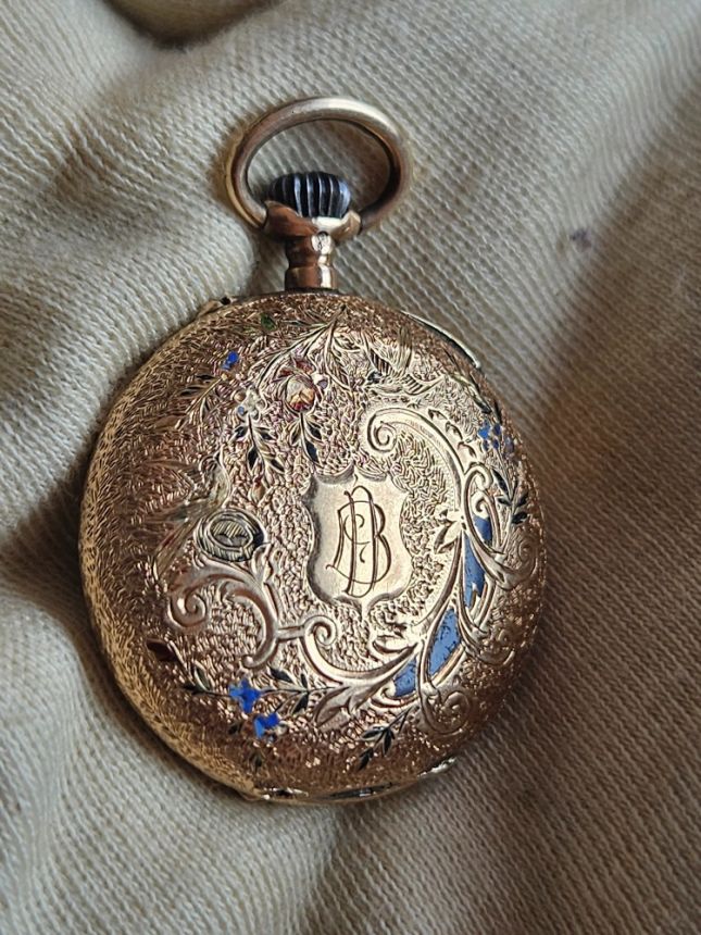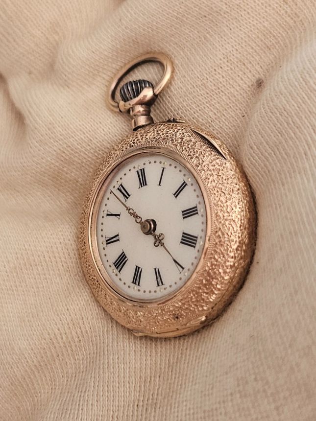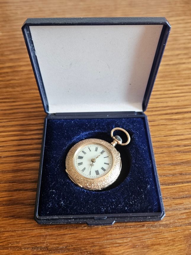 KRÁSNÉ SBĚRATELSKÉ 14K ZLATÉ KAPESNÍ HODINKY SE SMALTEM - PLNĚ FUNKČNÍ