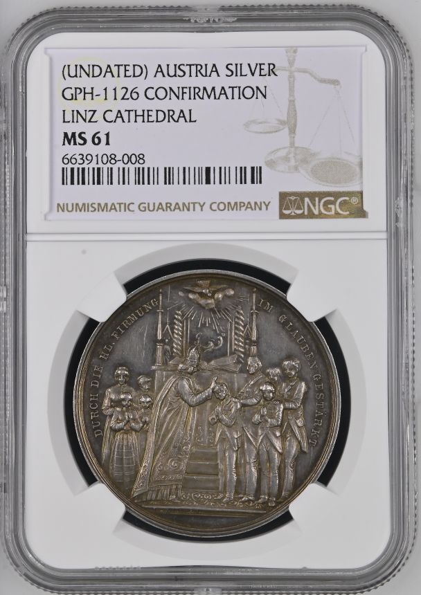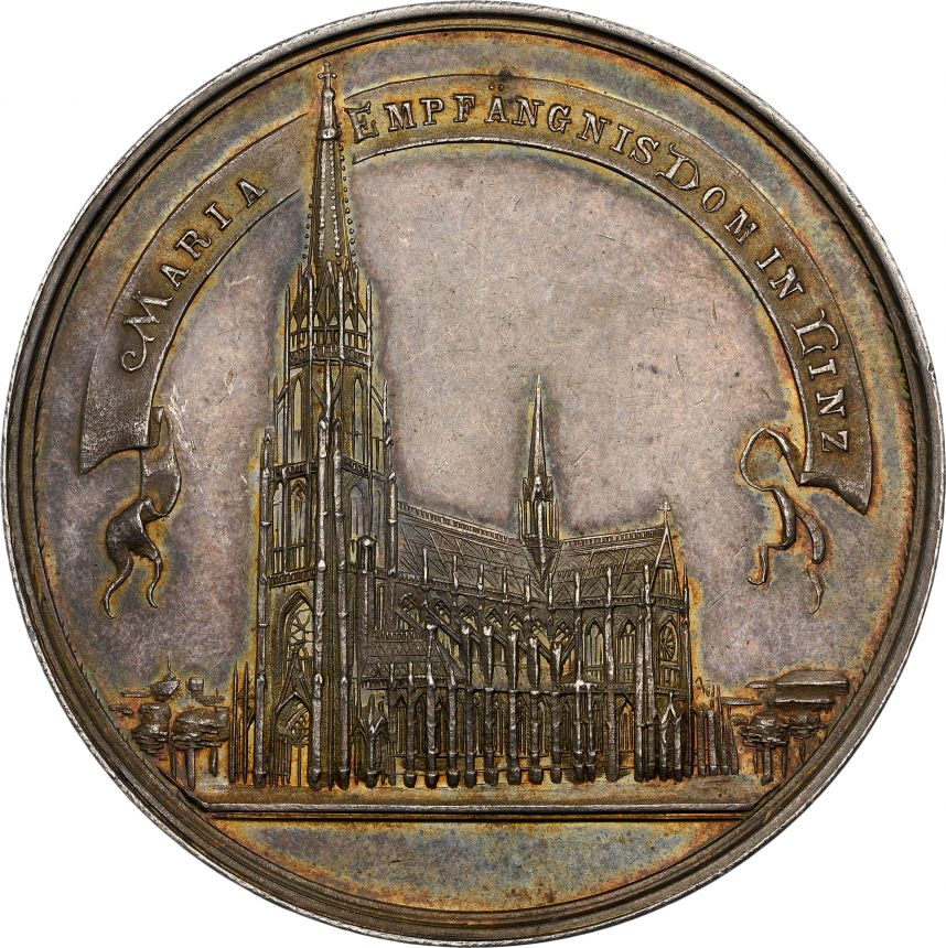 Stříbrná (AR) medaile, ZIMPEL, SALZBURG-ERZBISTUM "Baptistická medaile - Katedrála LINZ Ag, 39mm NGC MS 61