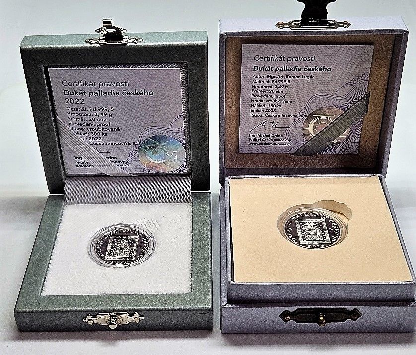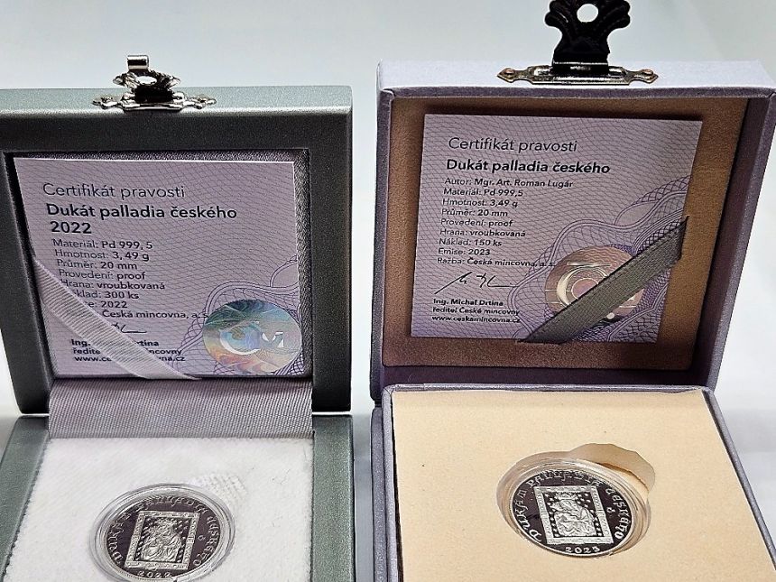 Dukát Palladia Českého ČM 2022 + 2023 - TOP INVESTICE - KOV PALLADIUM! - výhodná sada!