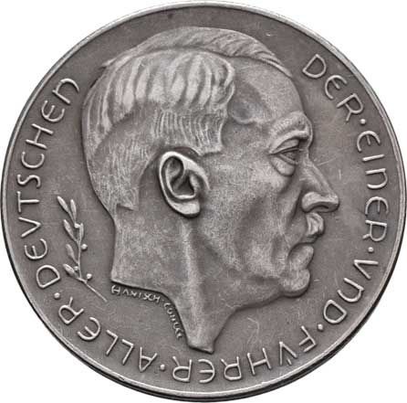 hlava A.Hitlera zprava, opis / říšské jablko, písmo,