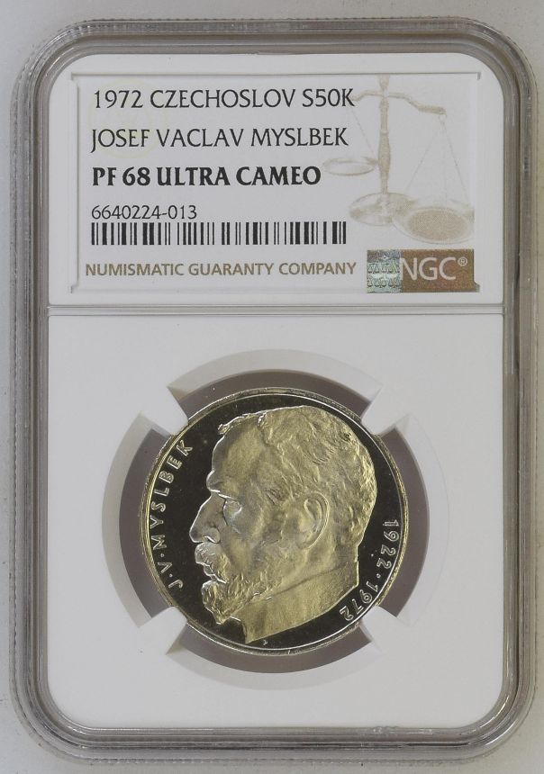 50 KČS ČSR 1972 PROOF J.V.MYSLBEK - Ag 700/1000, 13g, 31mm, KREMNICA - NGC PF 68 ULTRA CAMEO