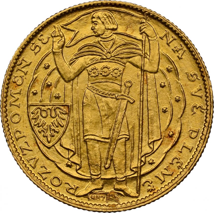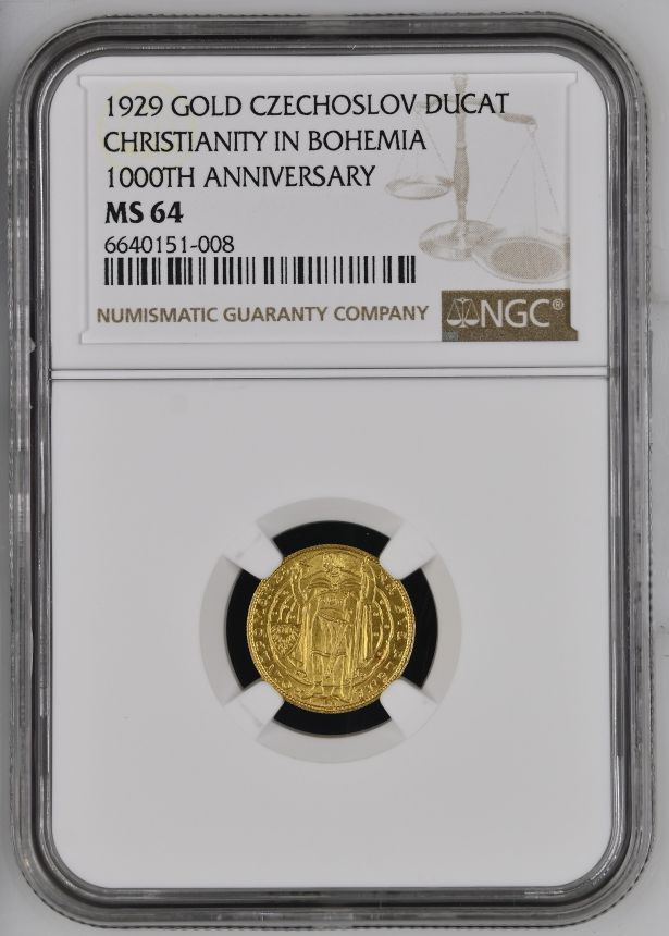 Dukát Millenium svatého Václava 1929 Au 987/1000, 16mm, 4g, Dukát, Mincovna Kremnica, Raženo 1631 kusů,1929 - NGC MS64