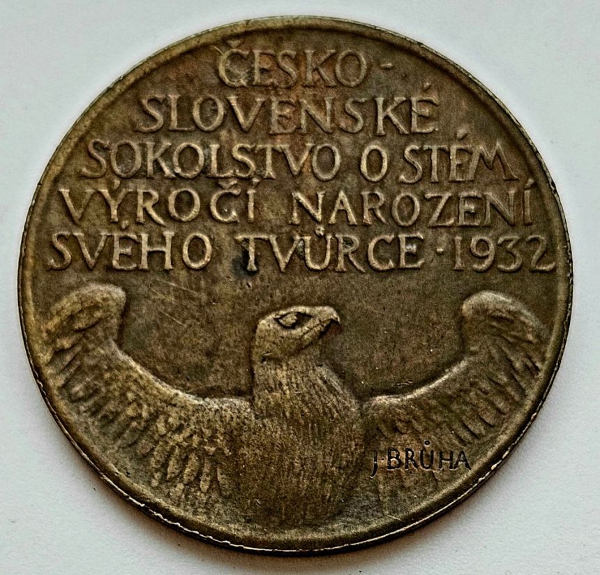 Medaile Miroslav Tyrš 1932 v dobové etue, bronz.