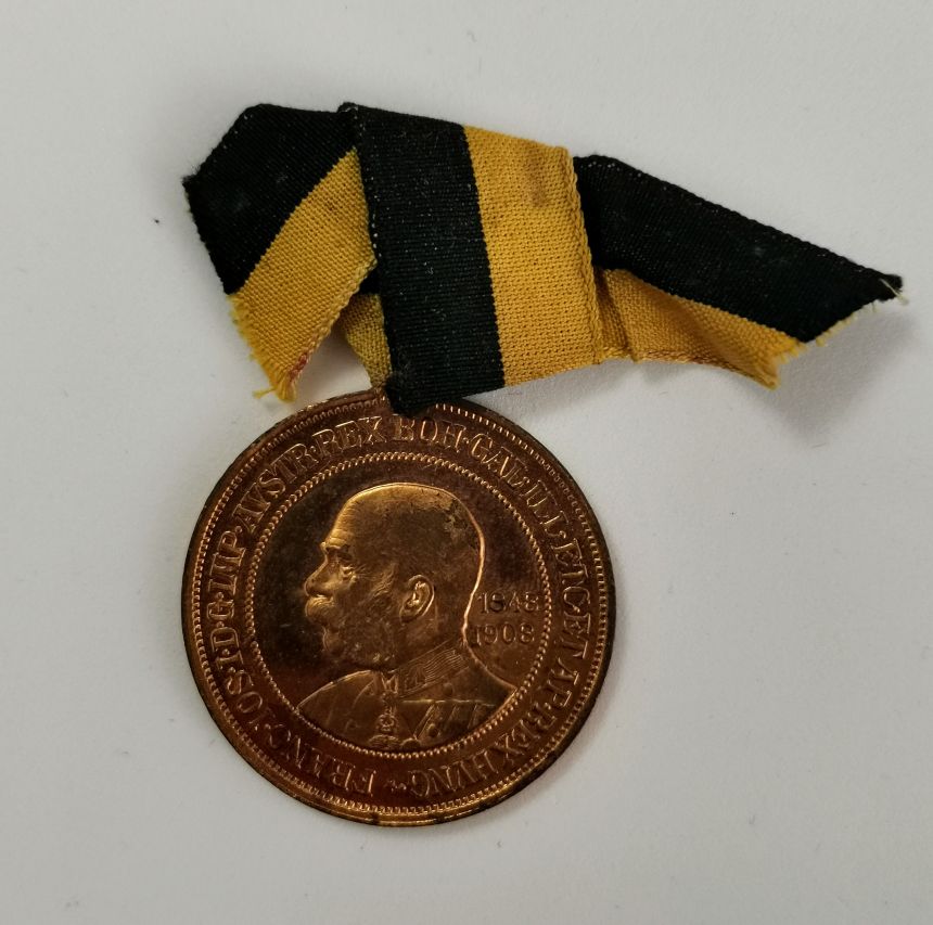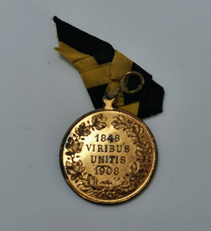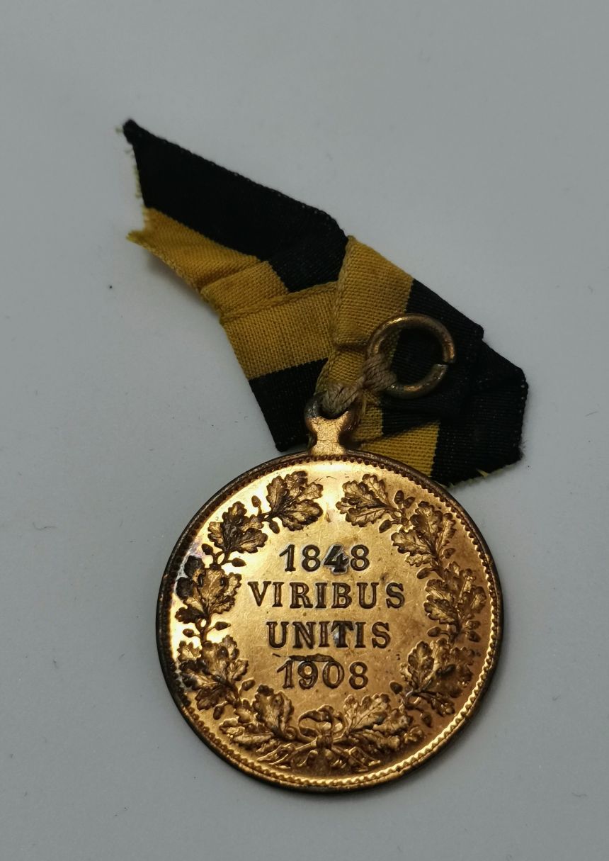 AE Medaile 1908 - K 60. výročí panování. Poprsí císaře vlevo, opis, letopočty / letopočty v dubovém věnci. Bronz 29 mm, dobové ražené ouško. Stuha
