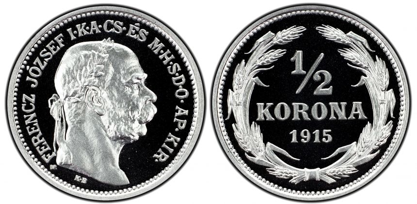 | Nominál: | 1/2 Koruna 1915/2023 KB - Novoražba vzácné zkušební ražby |
