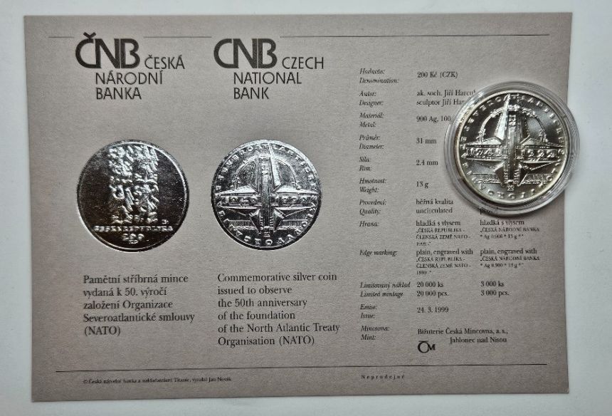 ČNB 200Kč 1999 - 50. výročí založení Organizace Severoatlantické smlouvy NATO