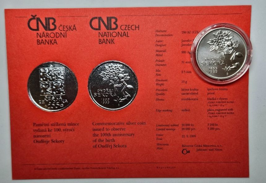 ČNB 200Kč 1999 - 100. výročí narození Ondřeje Sekory