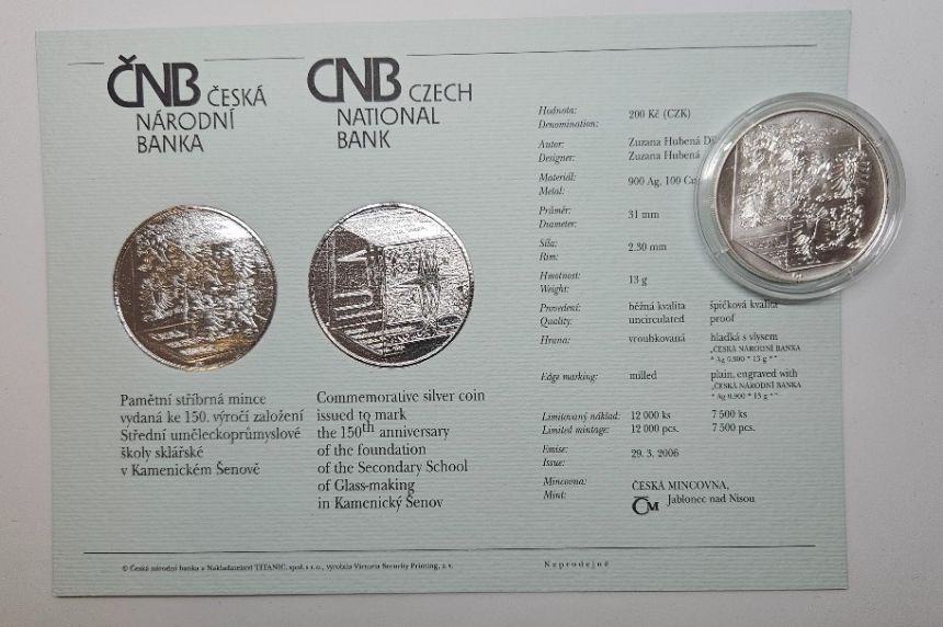 ČNB 200Kč 2006 - 150. výročí založení Střední uměleckoprůmyslové školy sklářské v Kamenickém Šenově
