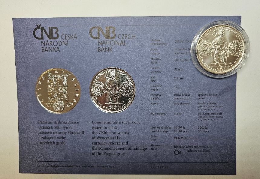 ČNB 200Kč 2000 - 700. výročí měnové reformy Václava II. a zahájení ražby Pražských grošů