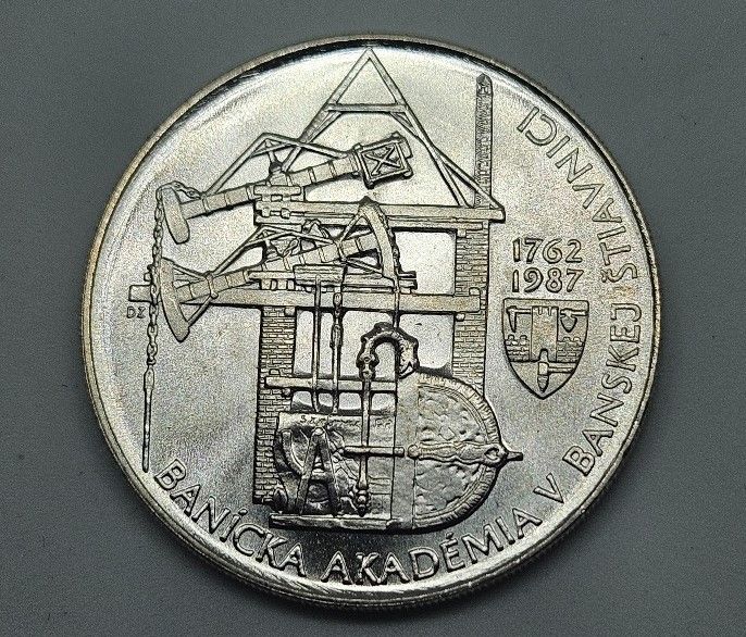 100 Kčs 1987- Banícká akadémia v Banskej Štiavnici, 31mm, 13g, Ag 500/1000, UNC, ETUE kapsle