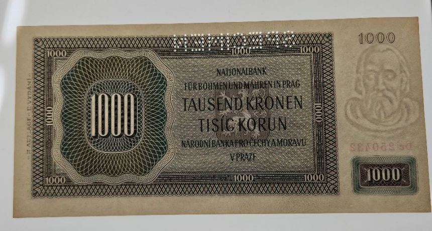 1000 Kčs 1942 - SPECIMEN vodorovně série Dc - stav mezi N a 1/1