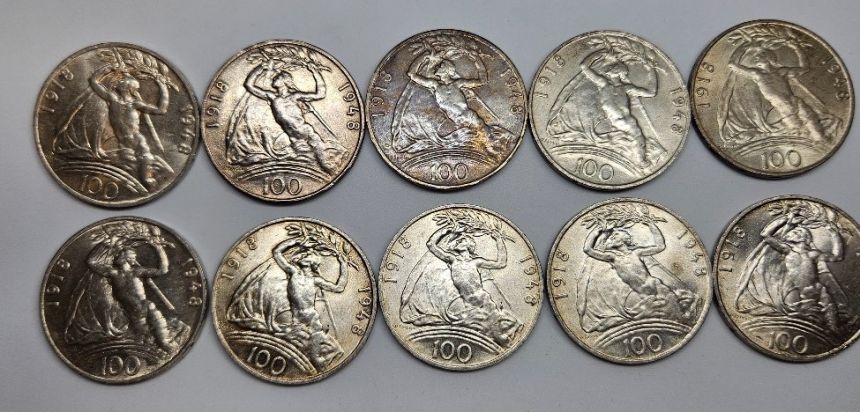 Lot 10x kusů Ag 100 Koruna 1948 - 30. výročí vzniků ČSR