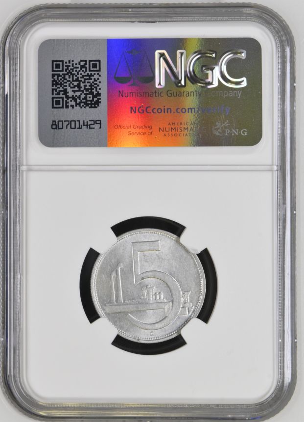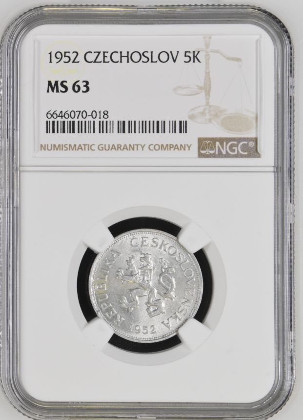 5 Koruna 1952 - nevydaná - původní ražba, hliník, 1.6g, NGC MS63