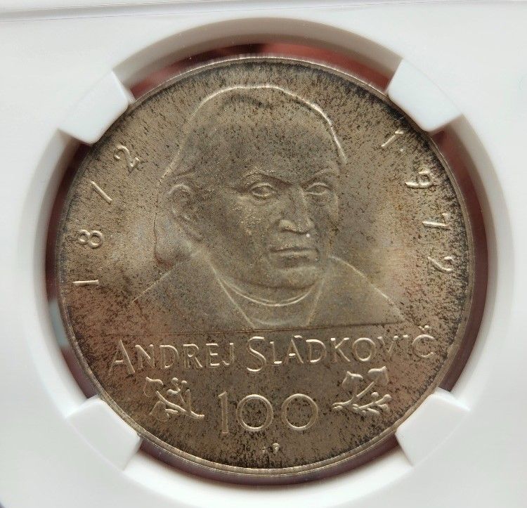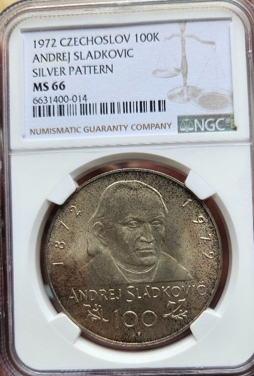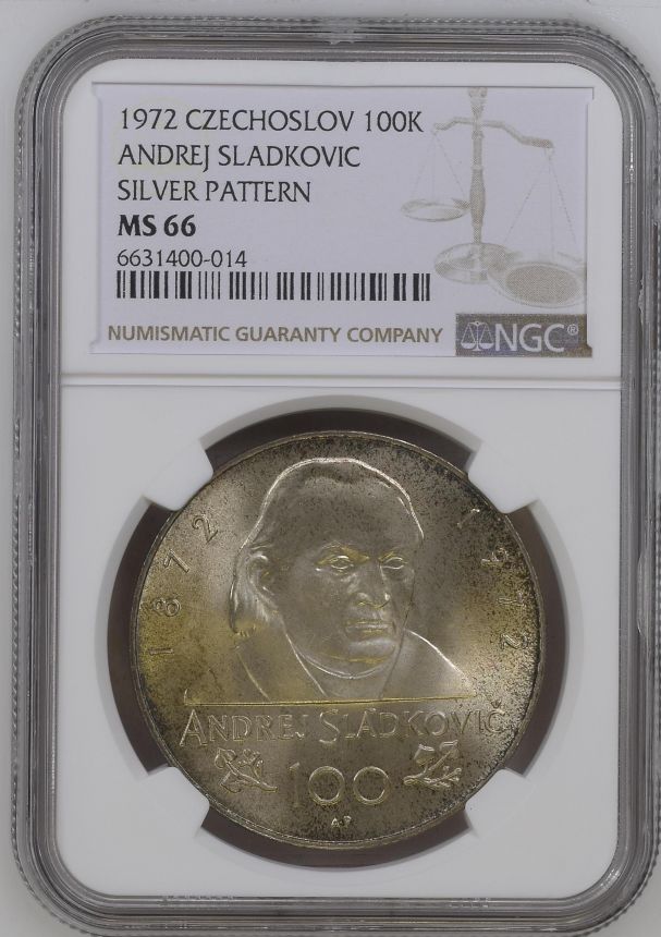 Ag NEVYDANÁ 100 KČS - ANDREJ SLÁDKOVIČ B.K. 1972 - NGC MS 66