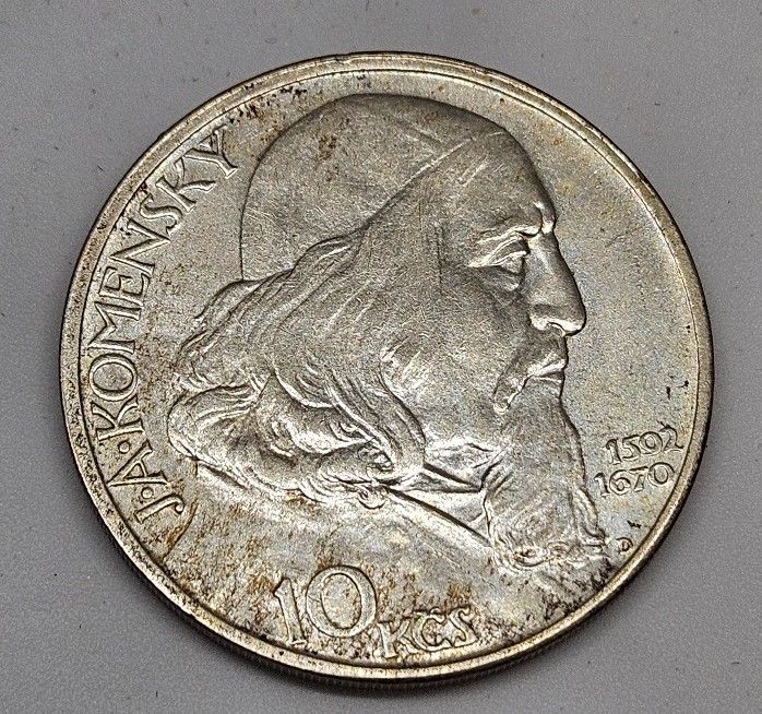 10 Kčs 1957- J.A. Komenský varianta BEZ PENISU - Ag500/1000, 12g, 30mm