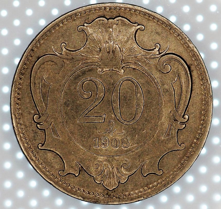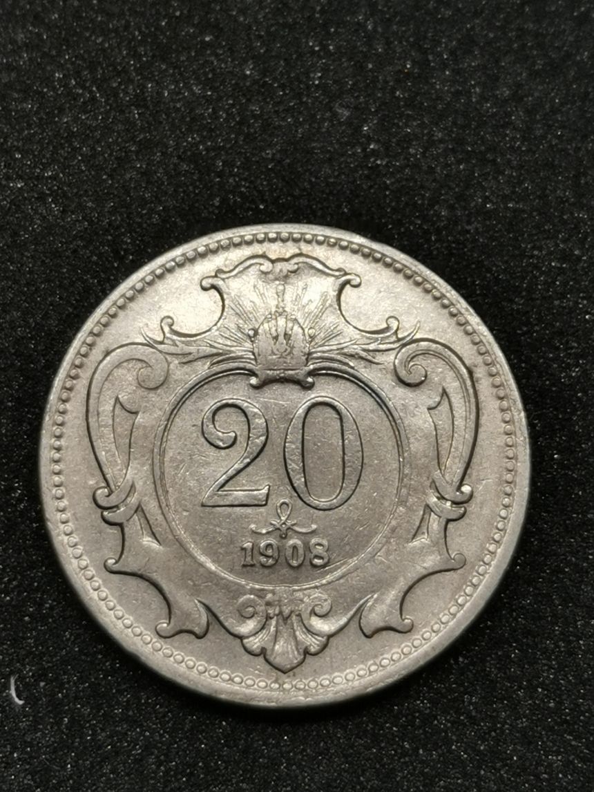20 Haléř 1908, Ni 21mm, 4g,hrana vroubkovaná. Stav 0/0 UNC/UNC