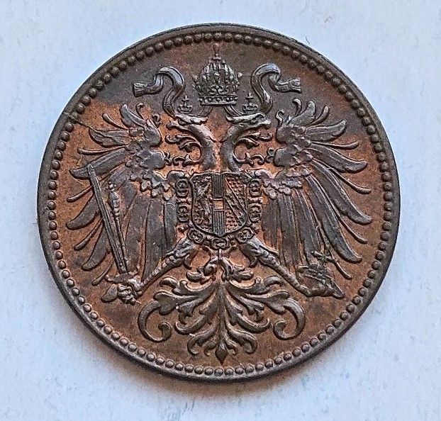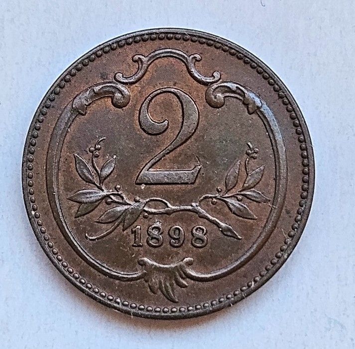 2 Haléř 1898 0/0, Cu 19mm, 3,33g, hrana hladká