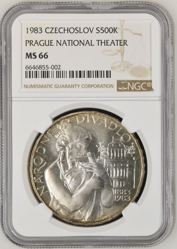 500 Kčs 1983 - Národní divadlo v Praze - NGC MS 66 - špičkový kus! Kvalita B.K. 40mm, 24g, Ag 900/1000