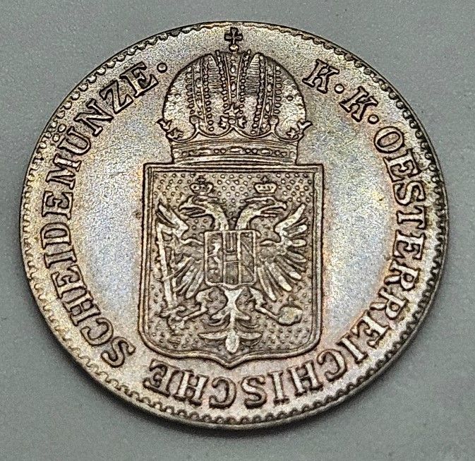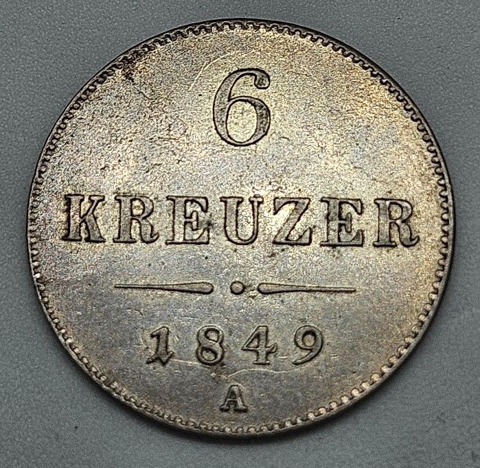 6 Krejcar 1849 A - František Josef I. Ag 0,438/1000, 19,5mm, 1,91g, hrana hladká, moc pěkný kus!