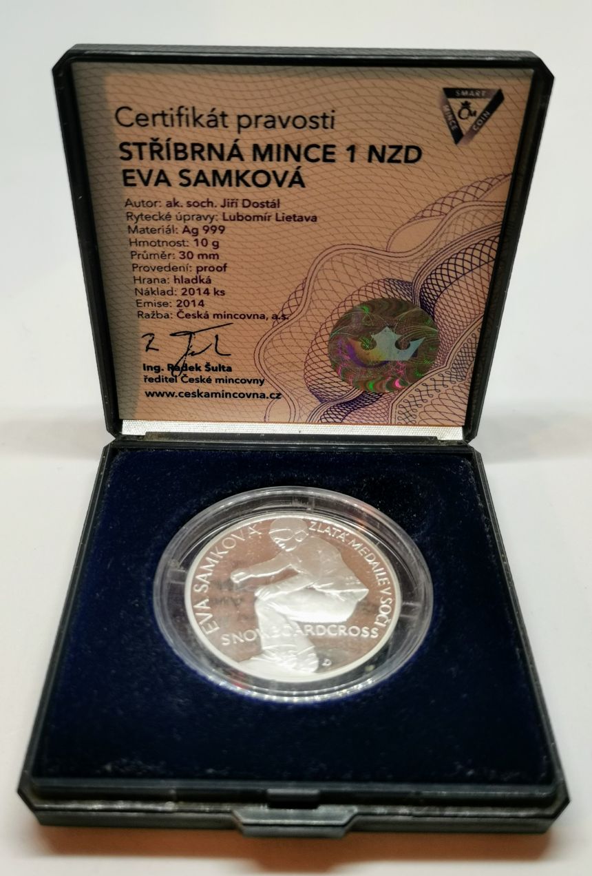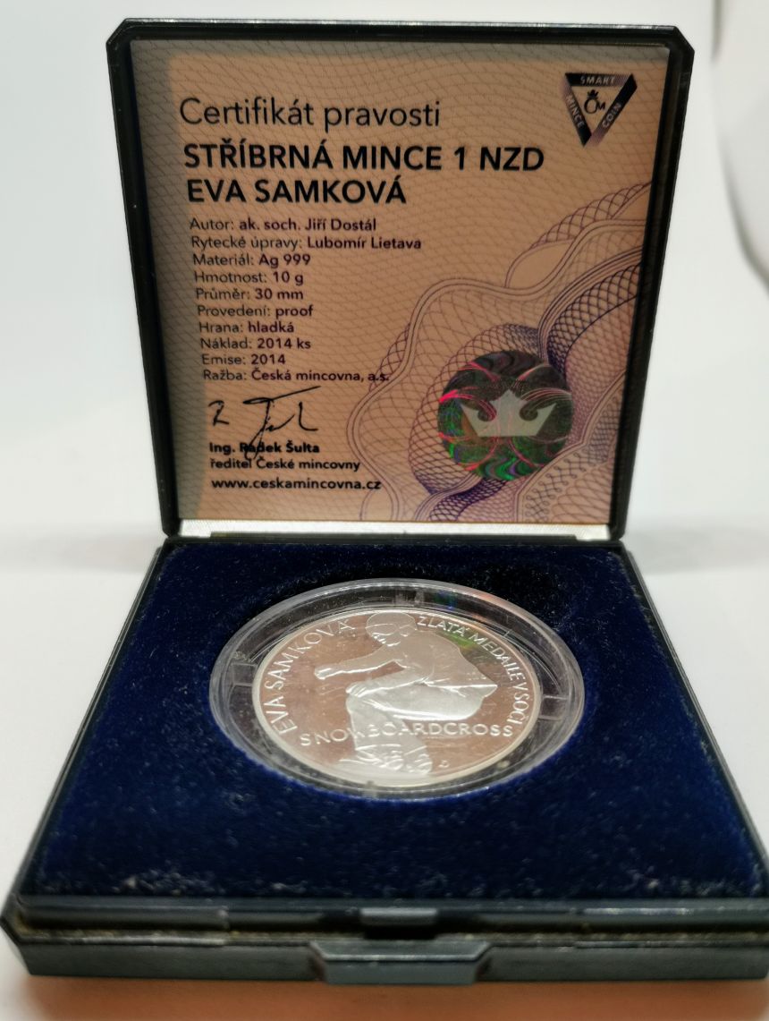 Eva Samková, materál Ag 999/1000, 10g, PROOF, rok 2014, LIMIT 2014 kusů, certifikát